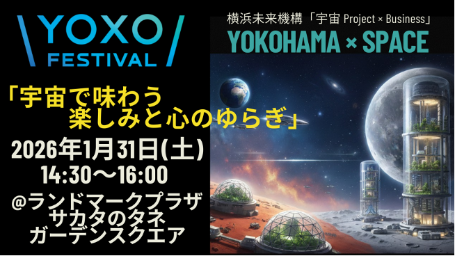 YOXO FESTIVAL 2026 において、京都大学大学院総合生存学館 SIC有人宇宙学研究センターは、横浜未来機構・横浜×宇宙プロジェクトと共催で以下のセッションを開催します。